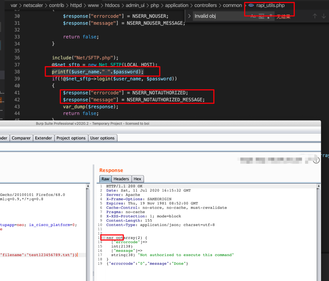 此时,我们已经创建了一个未授权的 session,由于在绕过command_execution()函数过滤时,我们将sid设置成了loginchallengeresponseIIIrequestbody,因此此时不能够直接使用创建的伪造session,我们需要对$_SESSION['NSAPI']也就是sid进行修复。